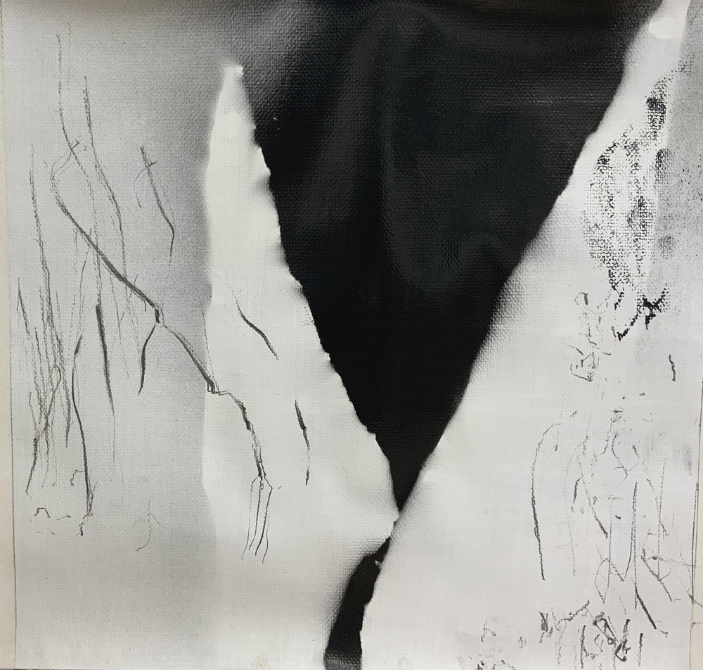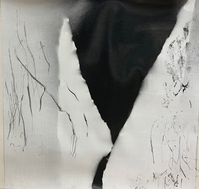 GROWTH MATTERS, 2024. Oil, Spray Paint, Charcoal on Paper, 18 x 19.